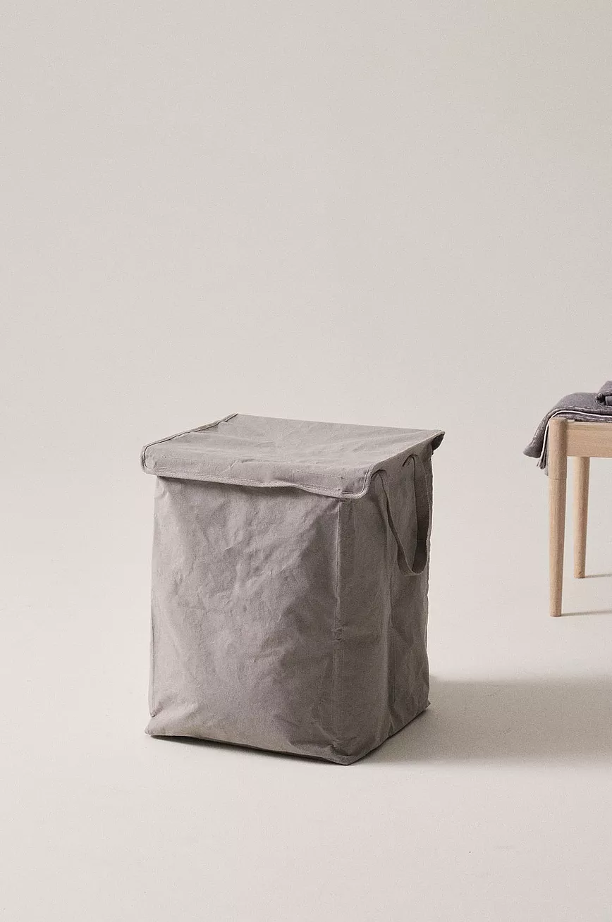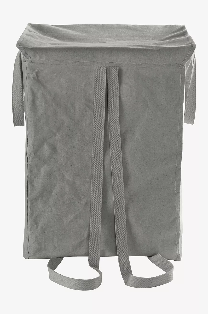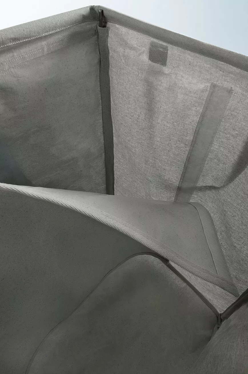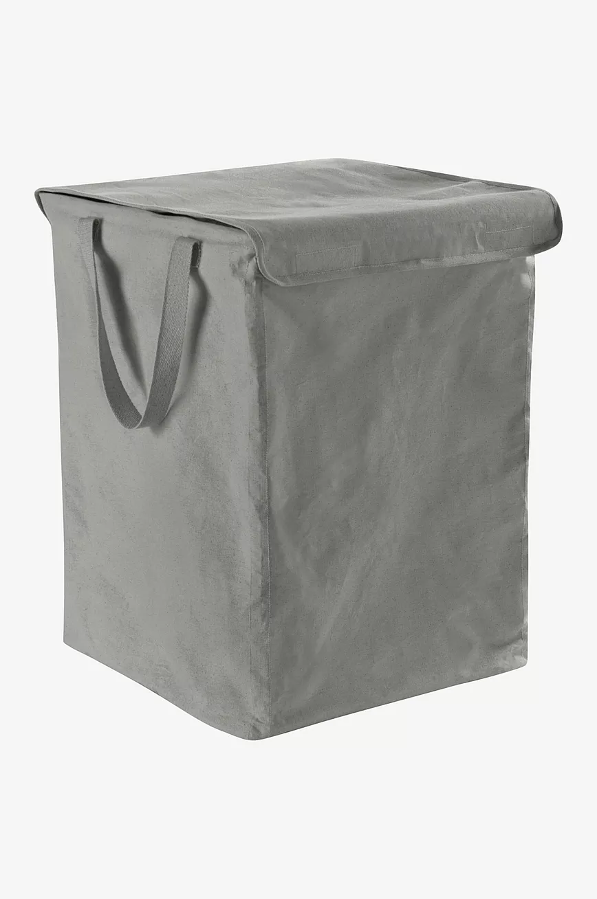 Firkantet skittentøyskurv i vevd bomullsstoff med laminering av polypropylen. Stammen er av plastrør. RIVOLI er praktisk fleksibel. Du kan velge å bruke den som ett rom eller dele den på midten for å få to rom hvis du vil sortere vasken. Den romslige skittentøyskurven har håndtak på begge sider slik at den blir enkel å være til vaskerommet. Det er også to bånd slik at du kan bære den som ryggsekk hvis det er et stykke å gå. Lokket lukkes med borrelås.
