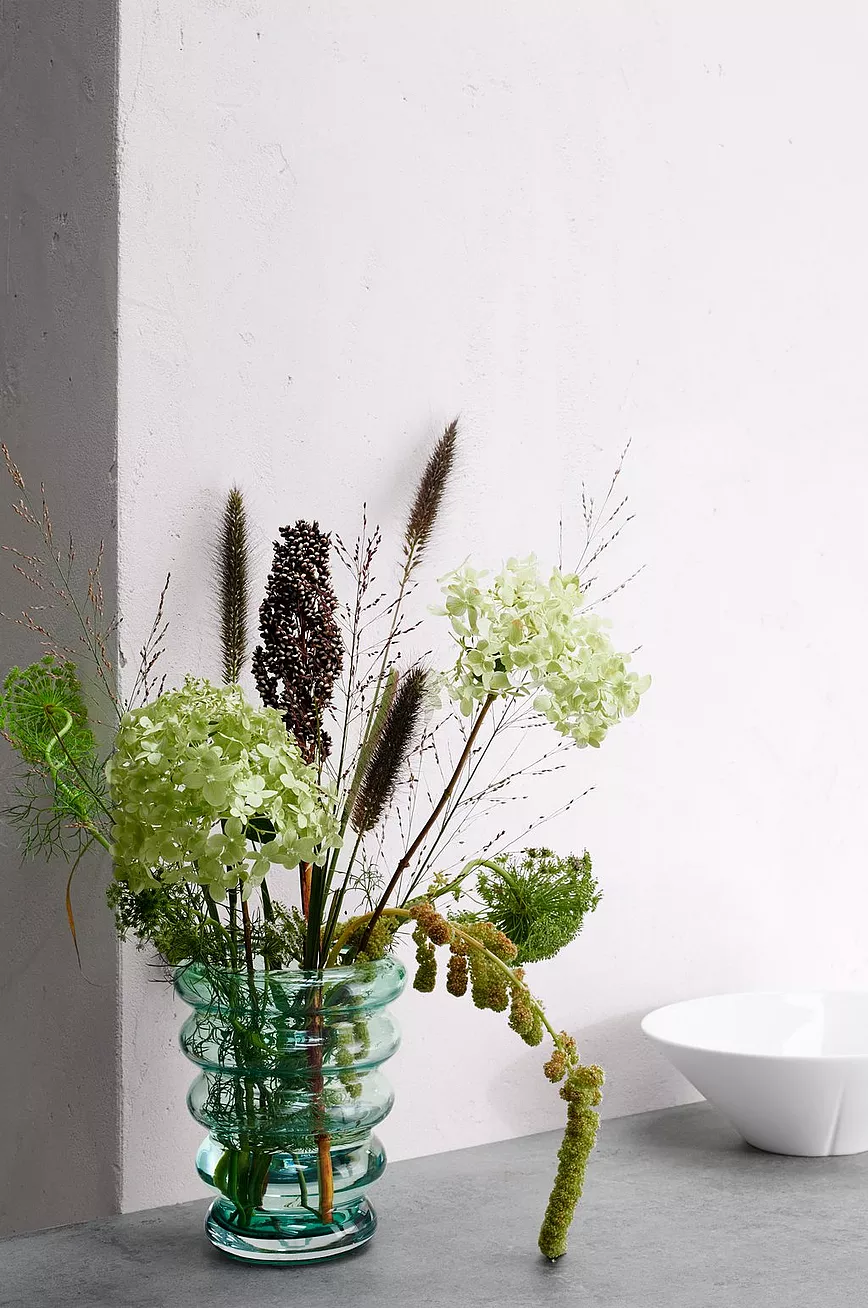Vasen Infinity har en følelse av rytme, flyt og bevegelse over seg, men fortolket i et stramt geometrisk designspråk. Det skaper et enkelt og elegant uttrykk som samtidig er mykt og lokkende, og kan kombineres med mange stiler i hjemmet. Vasen finnes i mintfarget glass i størrelsene 16 cm og 20 cm. Infinity-vasen er en åpenbar gaveidé til noen som setter pris på det vakre i livet, og som elsker å omgi seg med elegant design og vakre blomster.