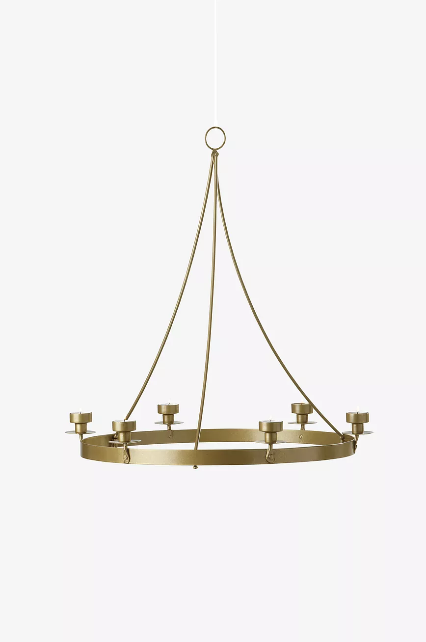 Beskrivelse: Lysekrone av pulverlakkert metall med 6 stk lysholdere for lys eller telys.