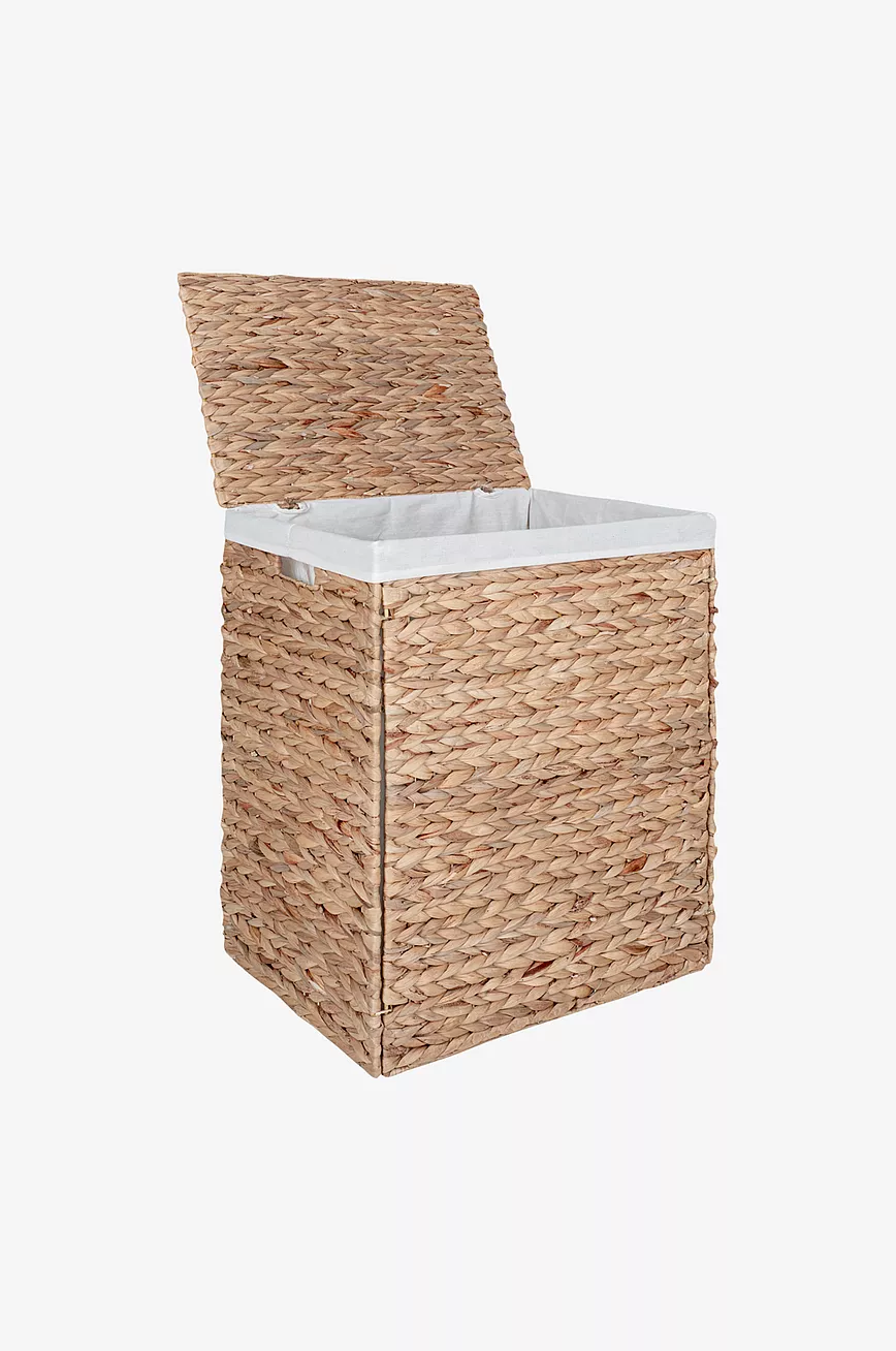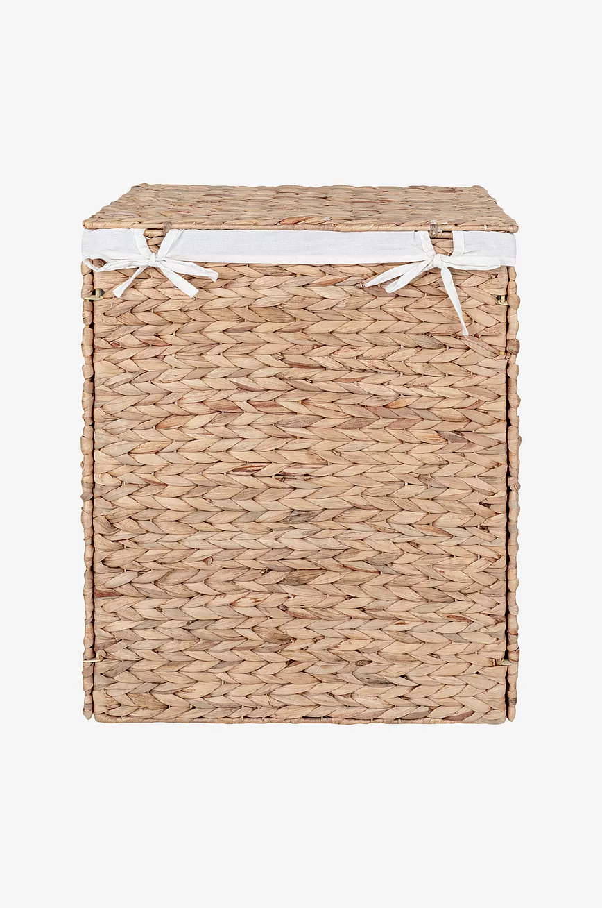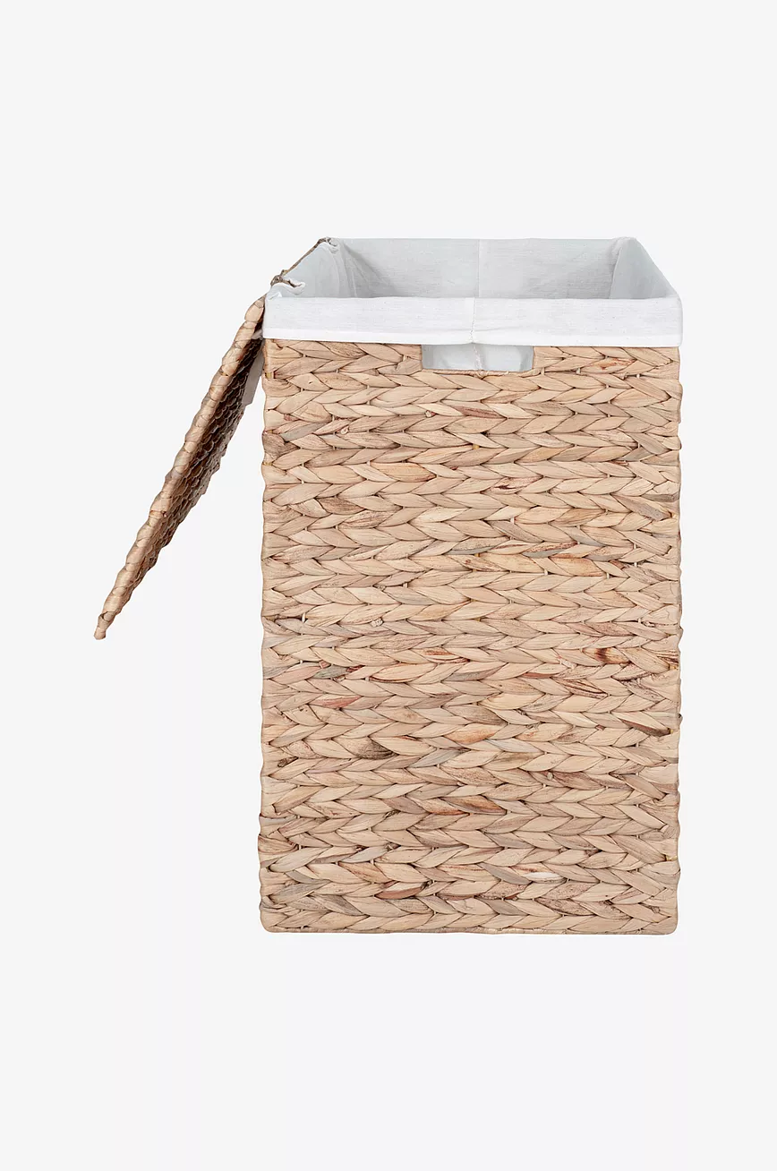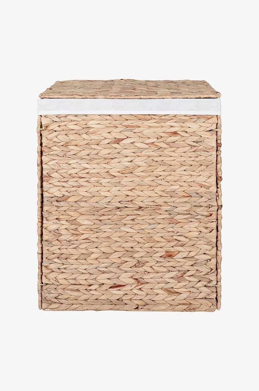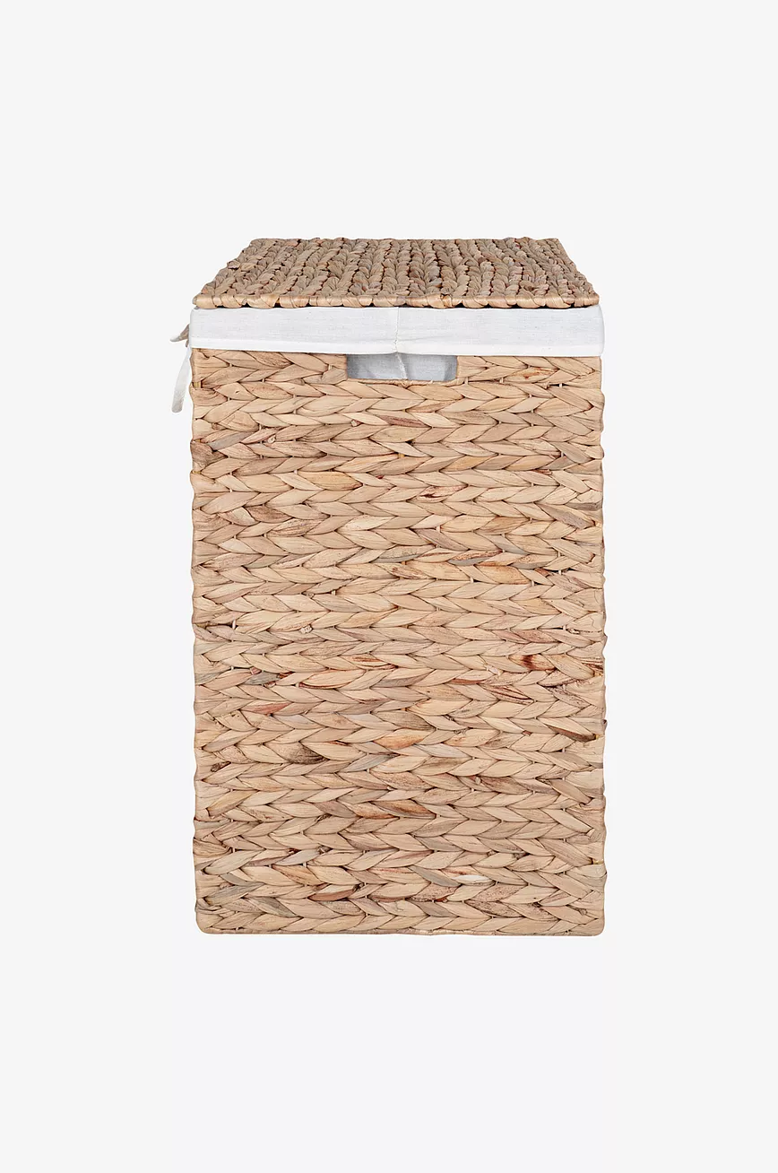 Sammenleggbar, fôret skittentøyskurv med lokk, av vannhyasint 43x32x55 cm