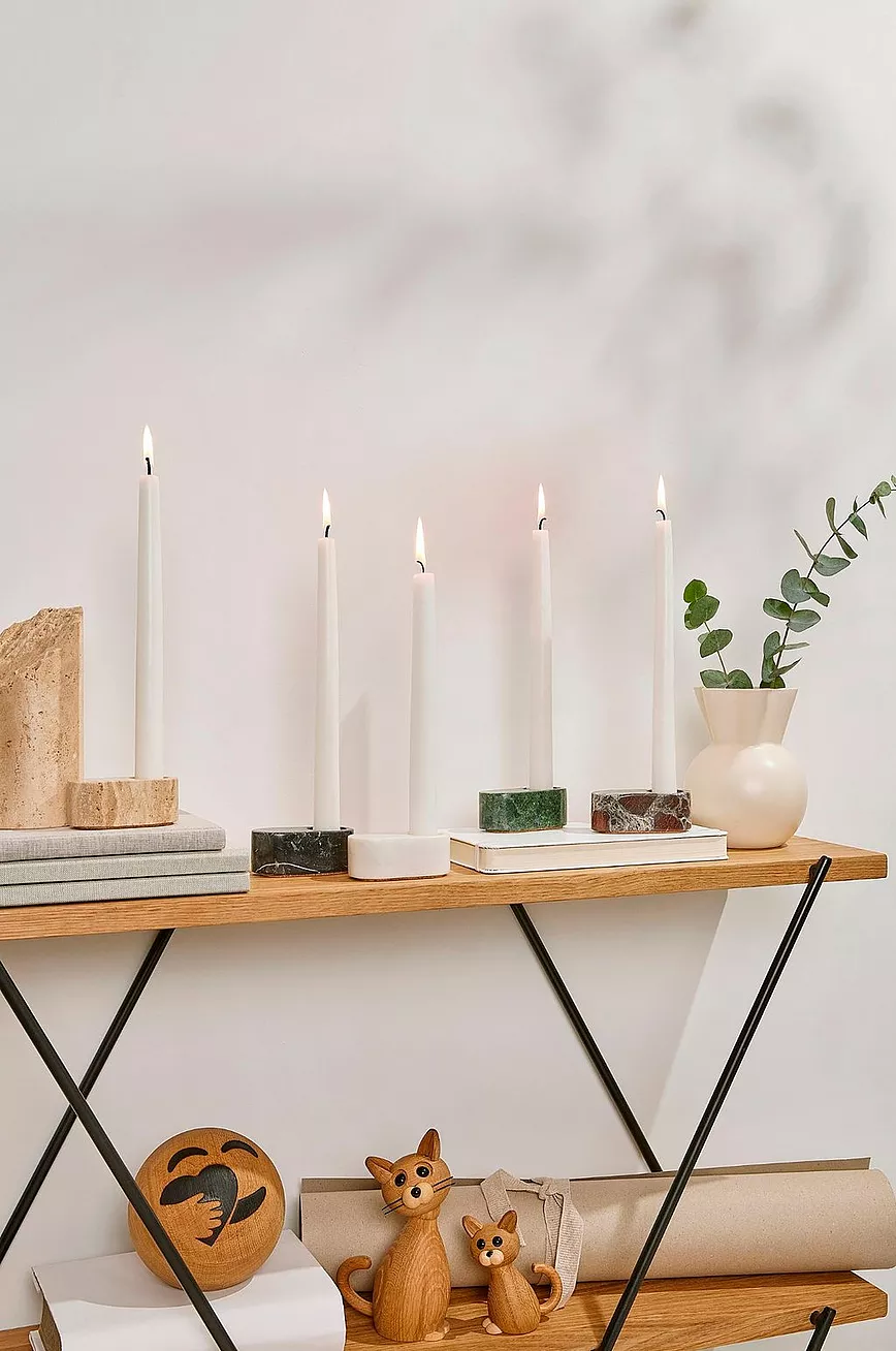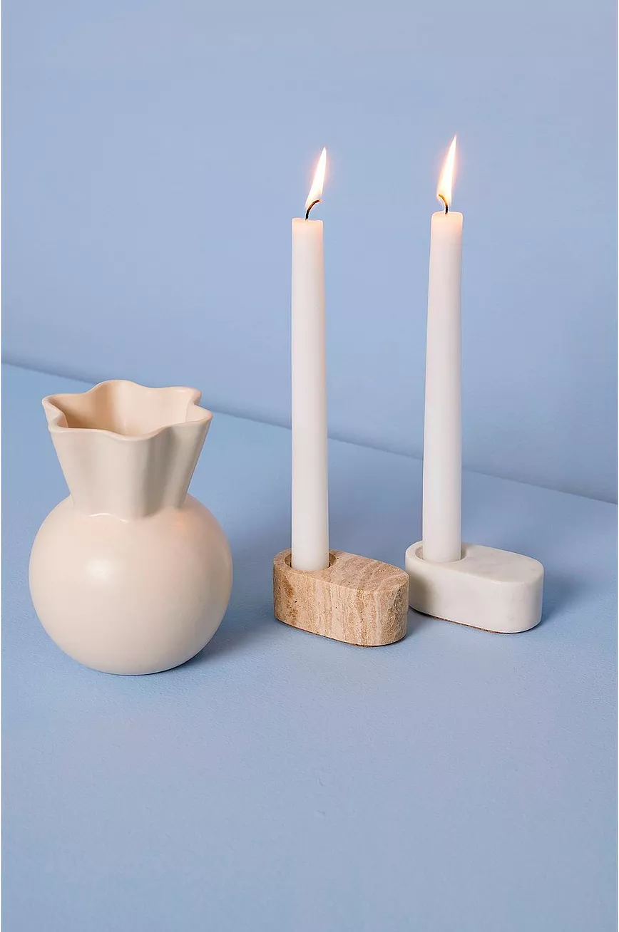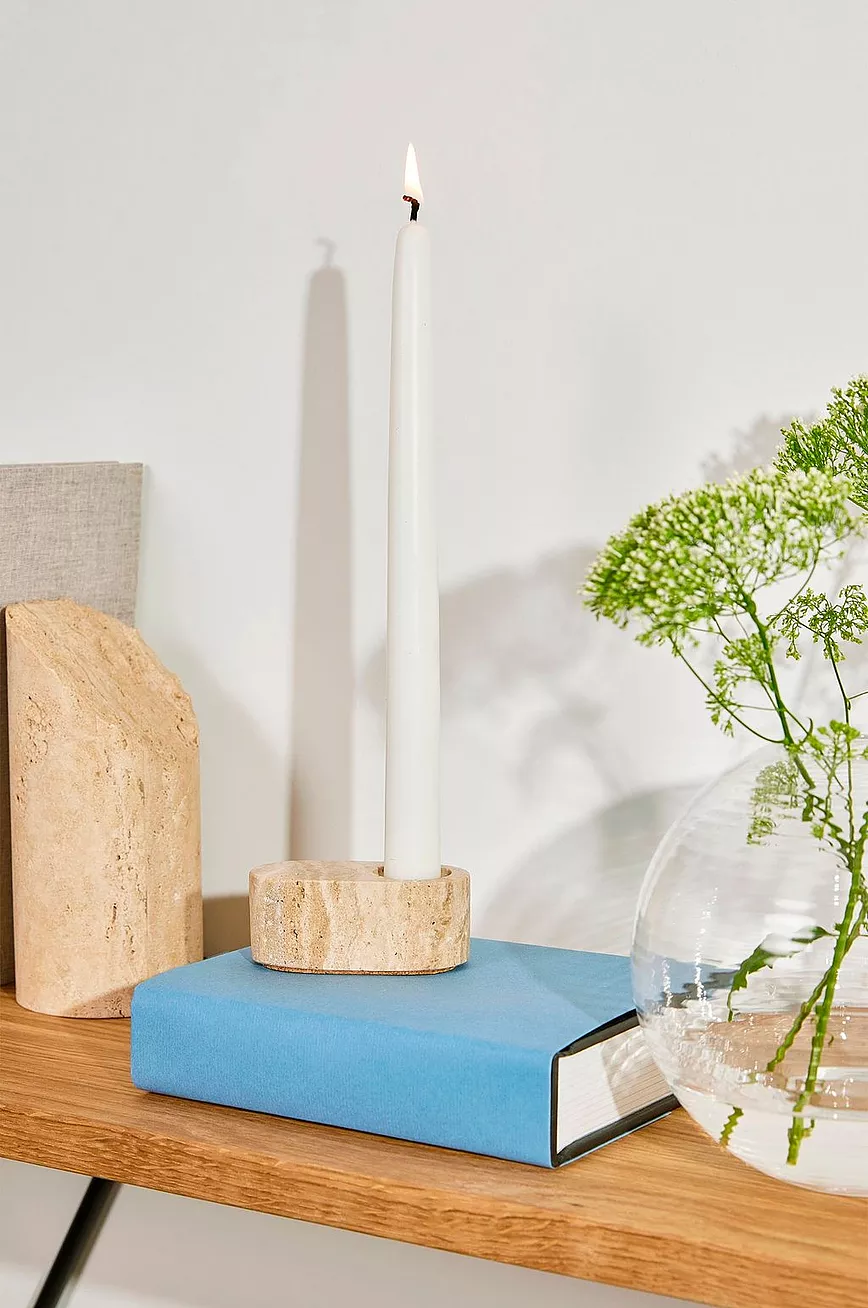 Ovaali er en minimalistisk og stilren lysestake i marmor. Den enkle designen og de myke formene gir lysestaken et rolig uttrykk som gjør den til en velkommen gjest i alle hjem. Lysestaken utstråler minimalistisk eleganse, og den vil se vakker ut i vinduskarmen, spisestua eller på en hylle. Bredde: 3 cm. Lengde: 8 cm. Høyde: 3 cm. Materiale: marmor. Øvrige materialer: kork