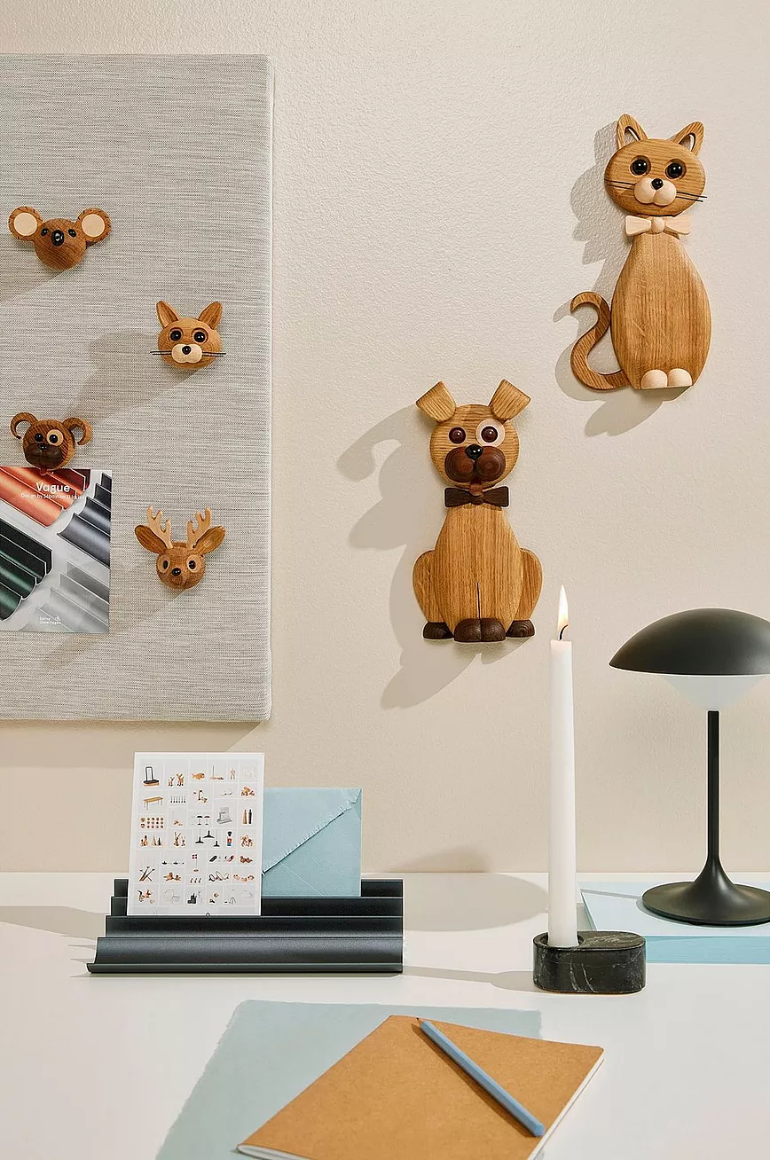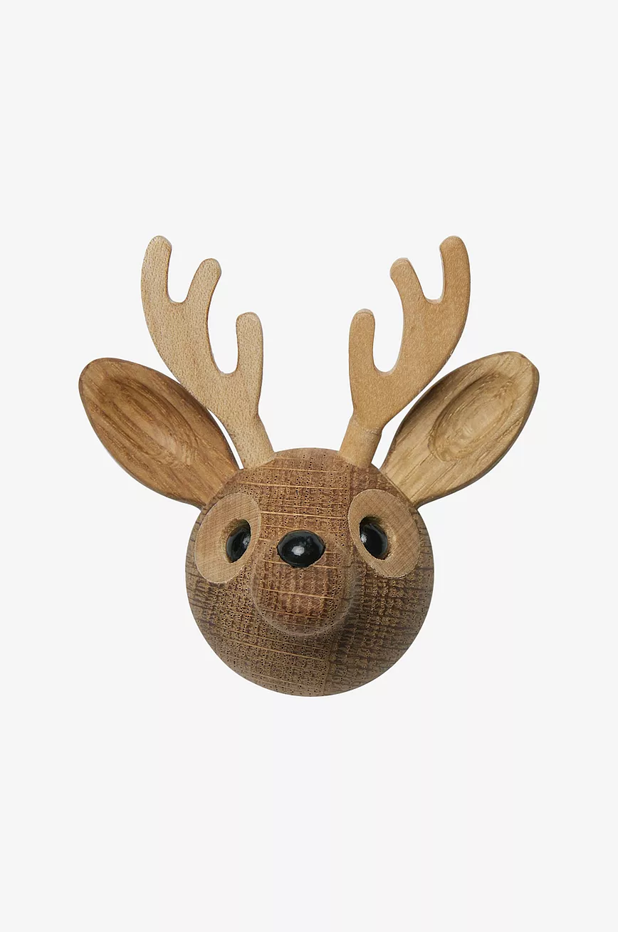 Magnetiske Spirit er en dekorativ magnet som på en fin måte portretterer den fine hjorten Spirit. Magneten er full av virkelighetstro detaljer med samme trekk som den storslagne hjorten, og fra Spirits hode stikker dens majestetiske horn opp. Bruk den fine magneten for å skape oversikt og heng opp invitasjoner, postkort, huskelister og bilder på kjøleskapet. Bredde: 8 cm. Lengde: 4 cm. Høyde: 8 cm. Materiale: FSC eik. Øvrige materialer: FSC lønn, plast, magnet
