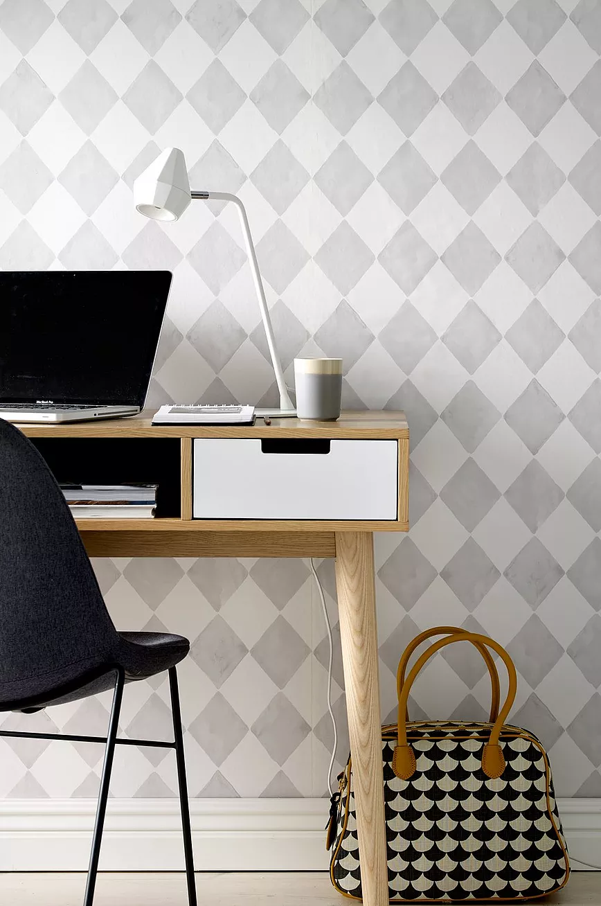Match med tapeten Smilla når du vil ha nøytrale vegger i kontrast til mønstrede tapeter.
