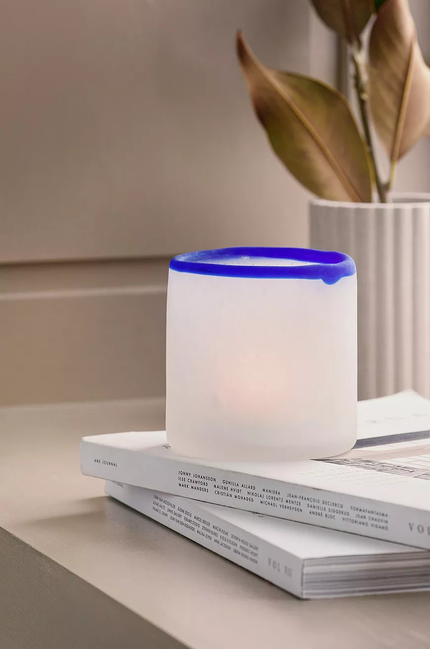 Håndlaget lyslykt i glass med frostet finish.