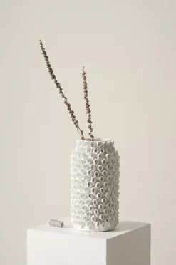 Kaia er en håndlaget vase med skulptural design som vil skille seg ut. Med sin unike look kommer den virkelig til å sette prikken over i-en i interiøret. Plasser den tom eller full av blomster, den er like vakker uansett.